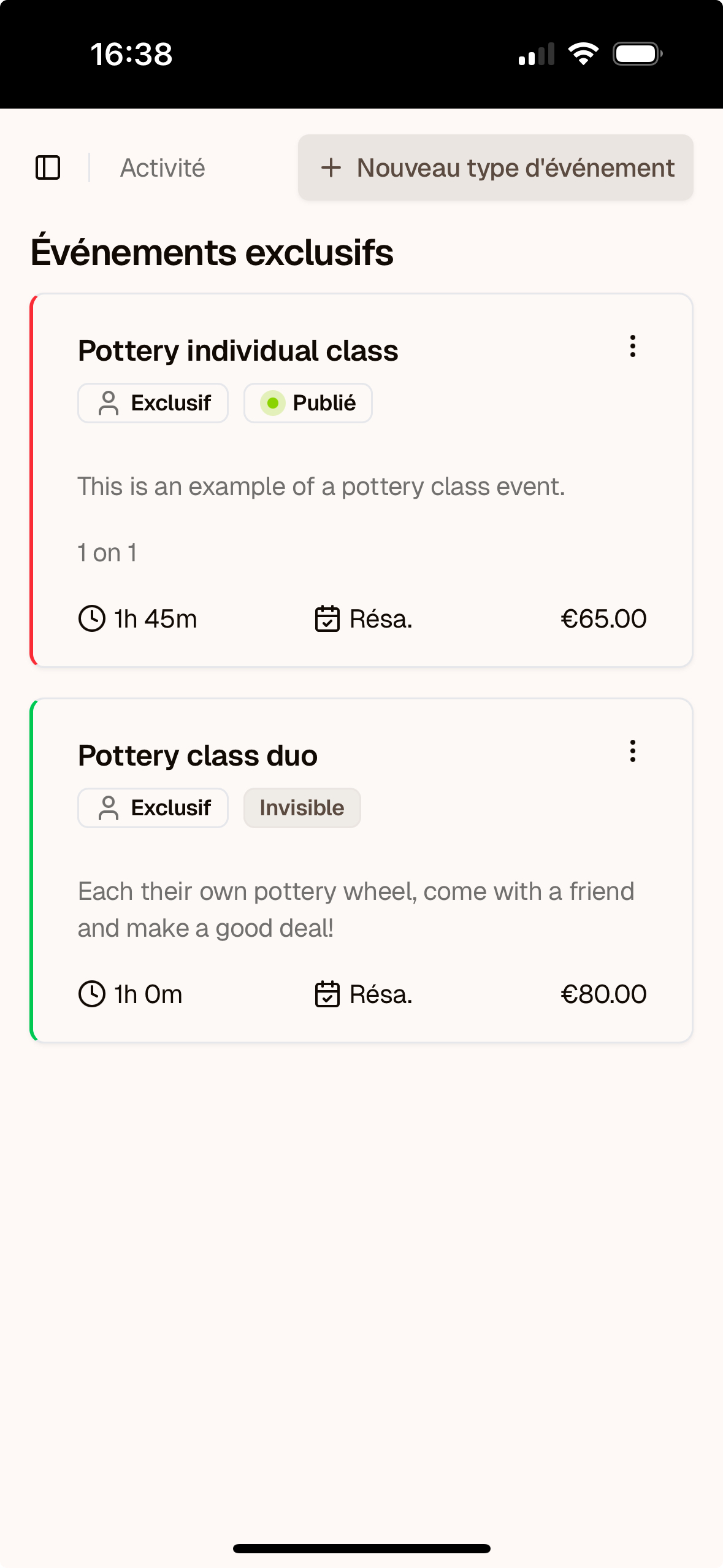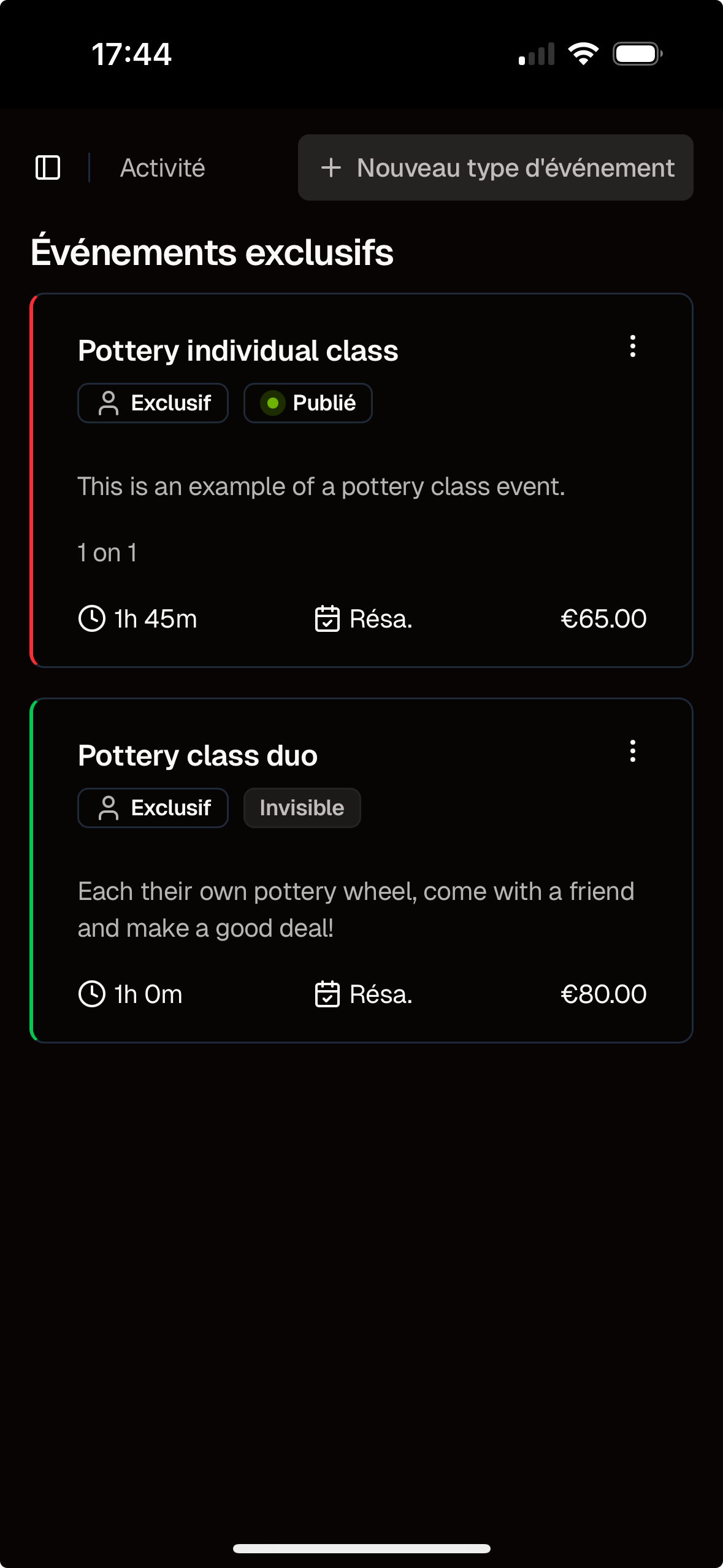 Créez autant de types d’événements que vous le souhaitez, et on espère que votre agenda se remplira vite !